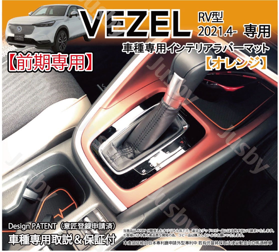 - (前期)ヴェゼル (VEZEL) RV型 インテリアラバーマット ゴムマット (オレンジ) 傷異音防止 パーツ アクセサリー ホンダ RV3,4,5,6