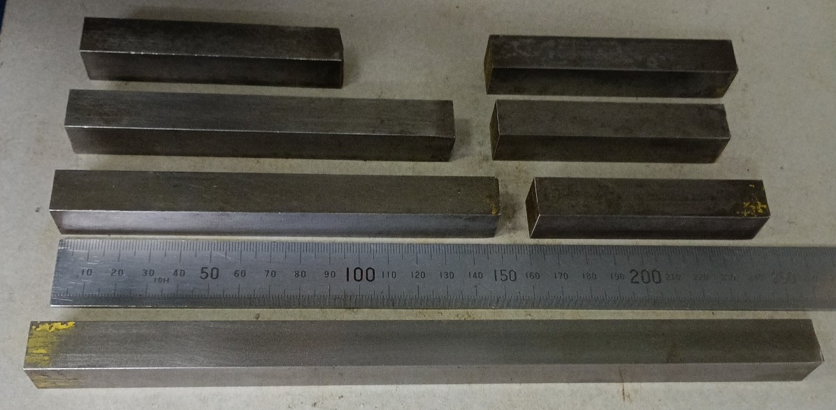 - S45C ミガキ 四角棒 S45C-D 一辺16mm 長さ248~82.5mm 7個セット 端材 ノベ833mm【匿名配送】JIS G 3123 16角