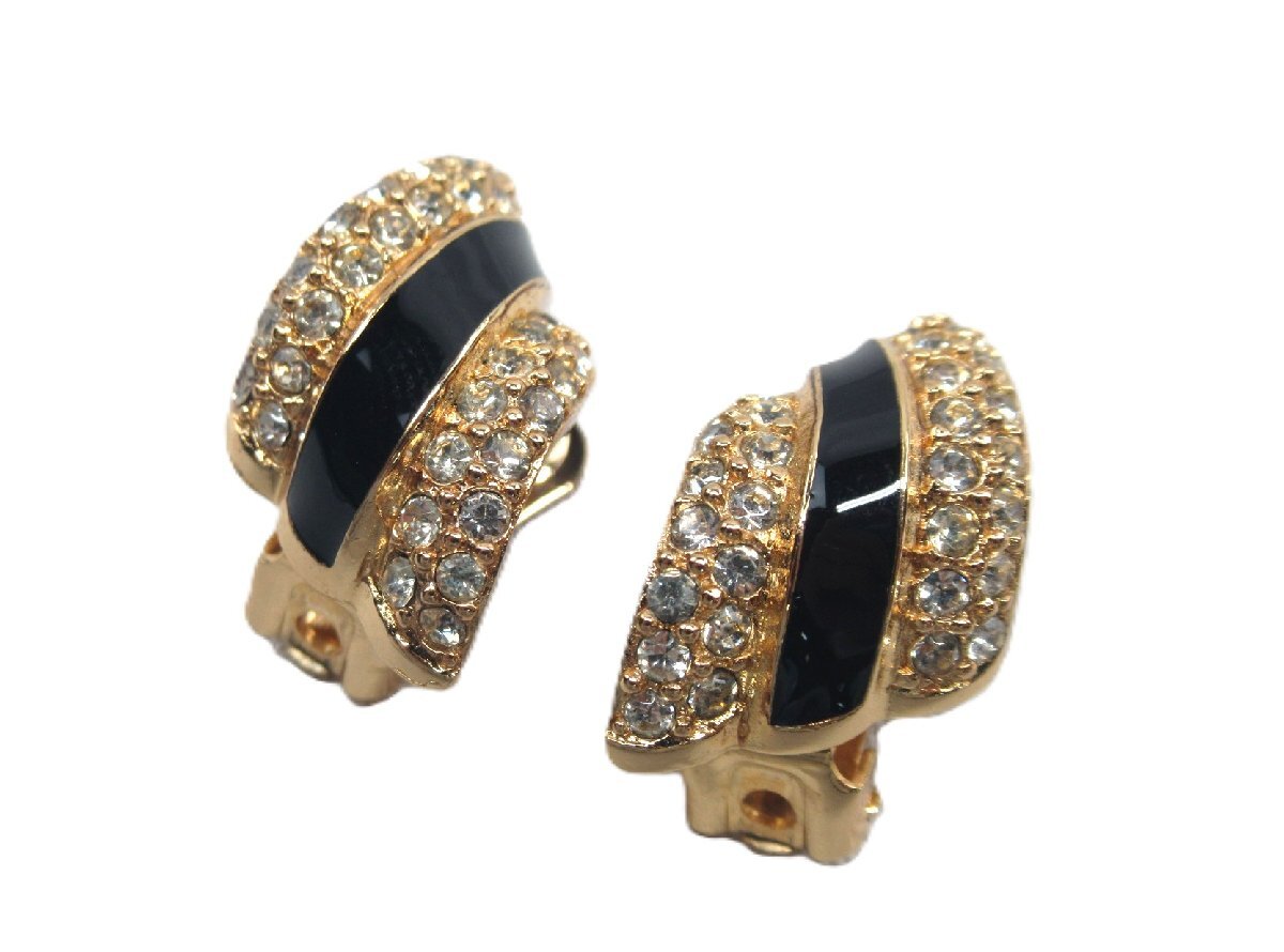 > ★【B送900円】2474 Christian Dior クリスチャンディオール イヤリング ゴールド×ブラック ラインストーン アクセサリー