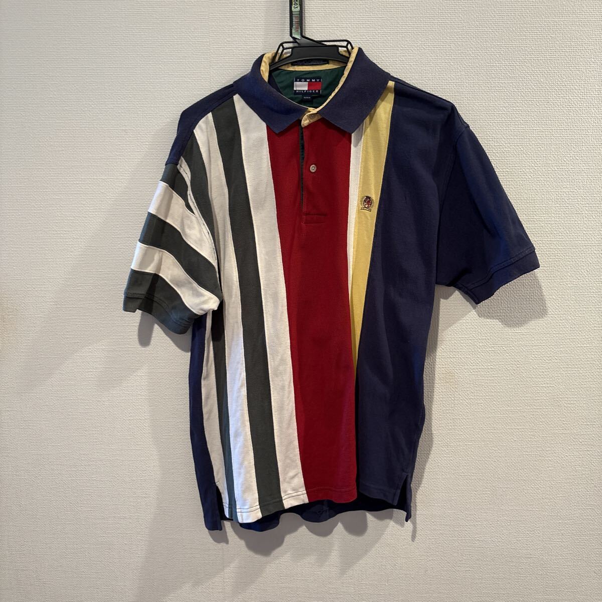 > ヴィンテージ TOMMY HILFIGER トミーヒルフィガー、カラフルストライプ柄ポロシャツ、Mサイズ!