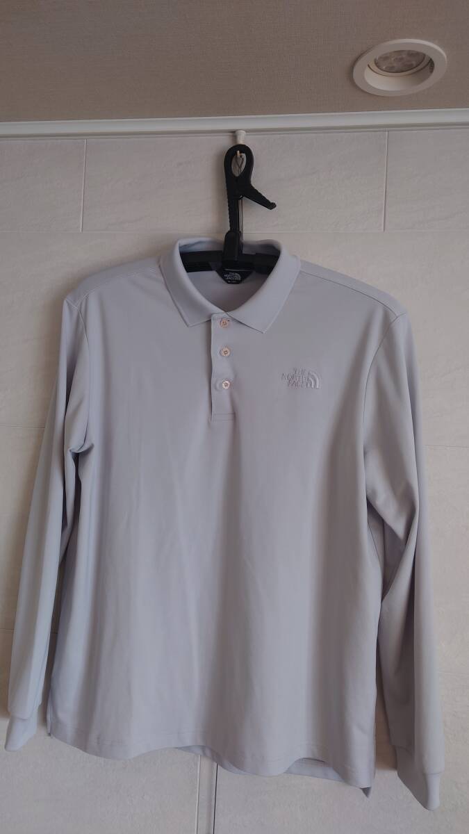 > <ほぼ新品> THE NORTH FACE ザ・ノース・フェイス メンズXL ロングスリープポロシャツ 色:ライトグレー