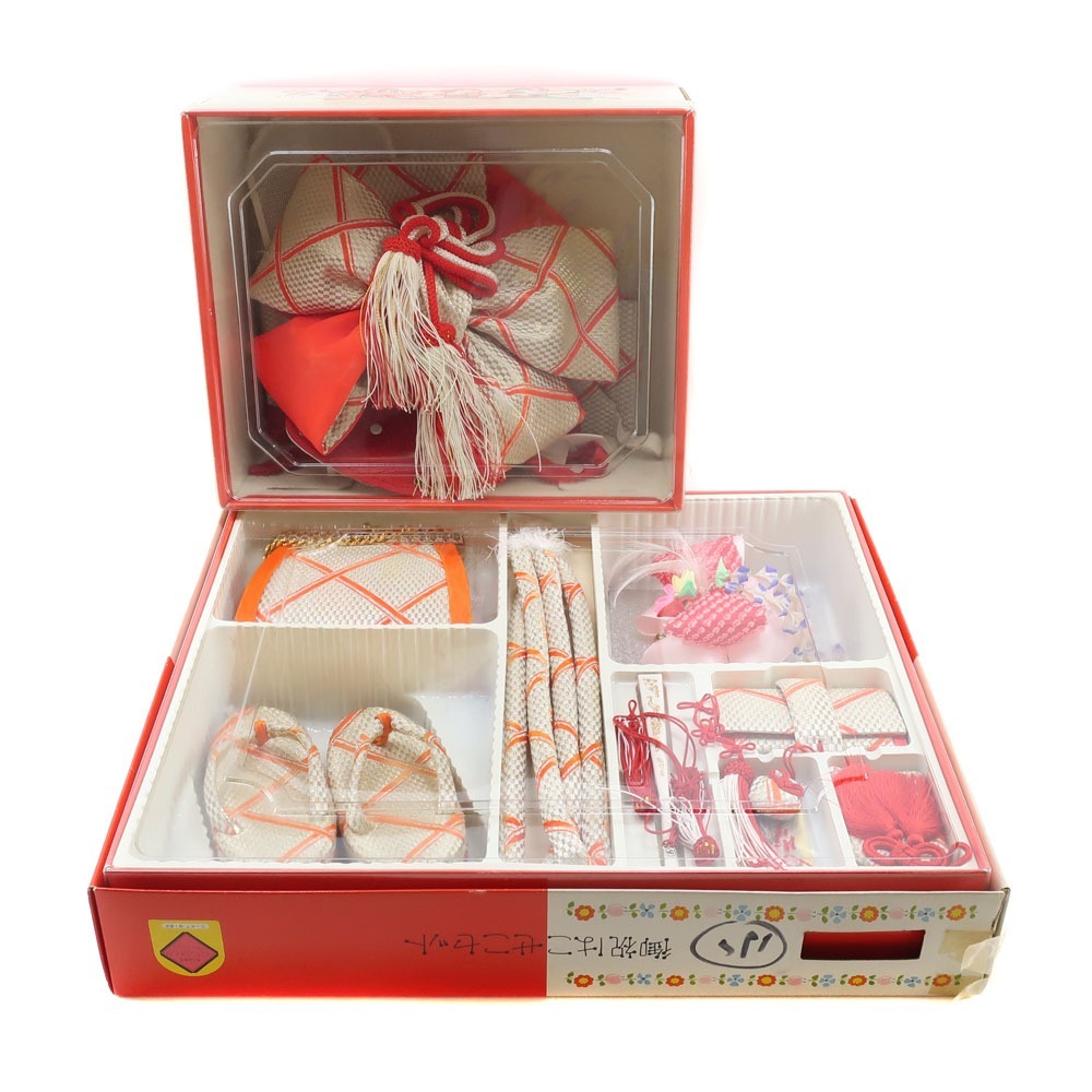 - 七五三 結び帯 筥迫(はこせこ)セット 3-5歳 和装 ホワイト/オレンジ キッズ【M191125001】中古