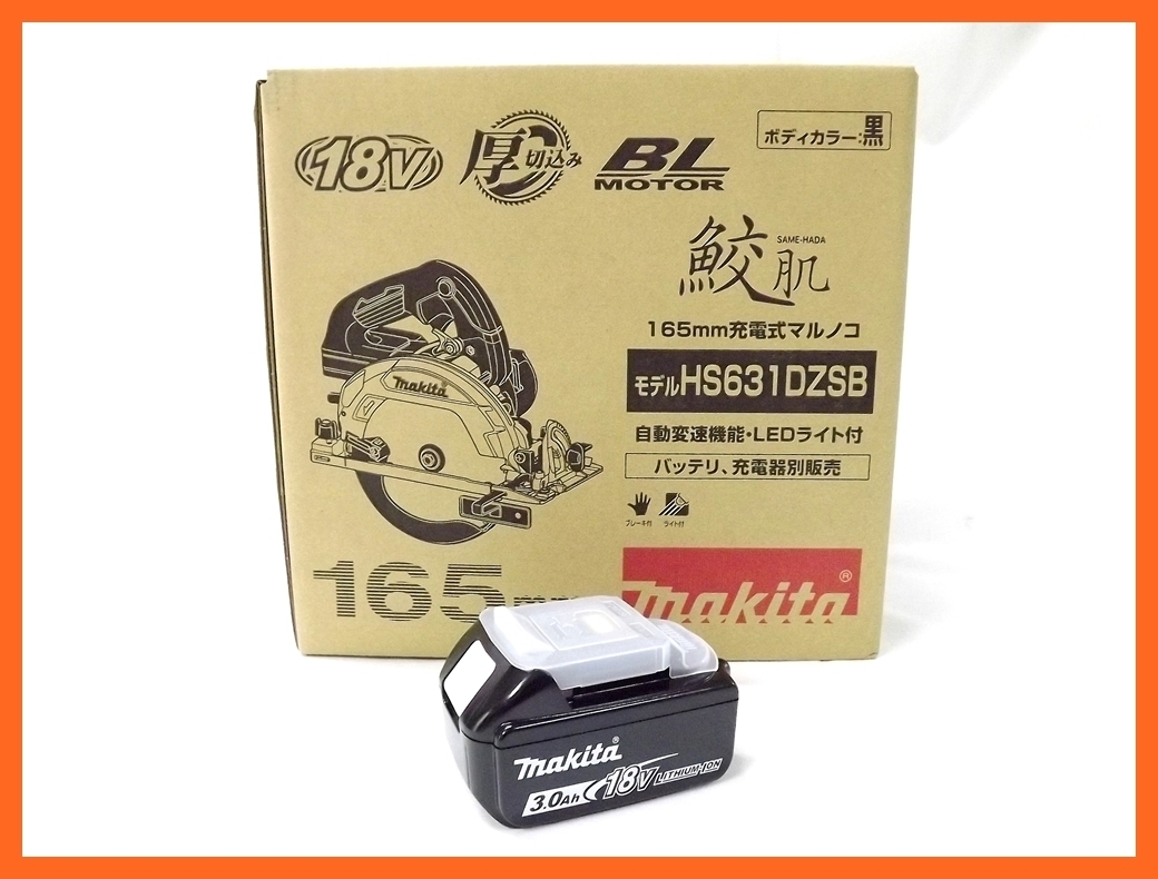 > マキタ 165mm 18V充電式丸のこ HS631DZSB(黒)+バッテリ(BL1830B)[3.0Ah]○■安心のマキタ純正/新品/未使用■