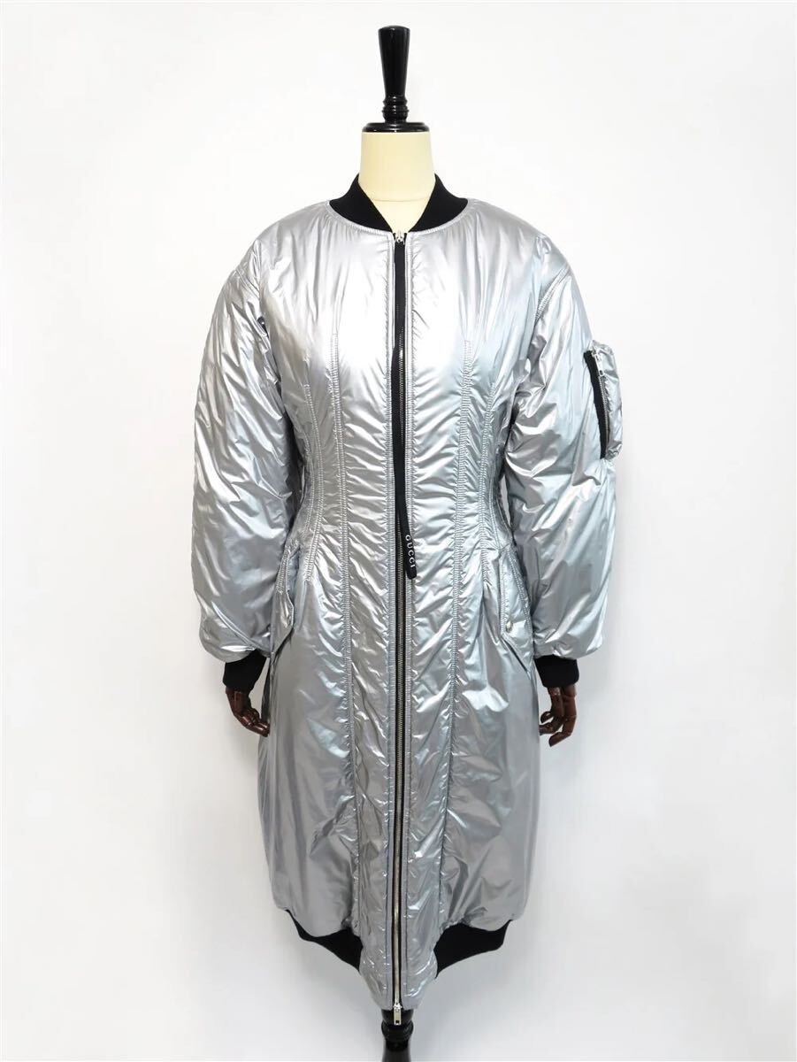 - 70434 GUCCI / グッチ メタリック ナイロン 中綿 ロング コート
