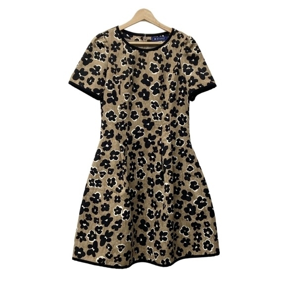 > エムズグレイシー M'S GRACY サイズ38 M - ベージュ×黒×白 レディース 半袖/ひざ丈/花柄 美品 ワンピース