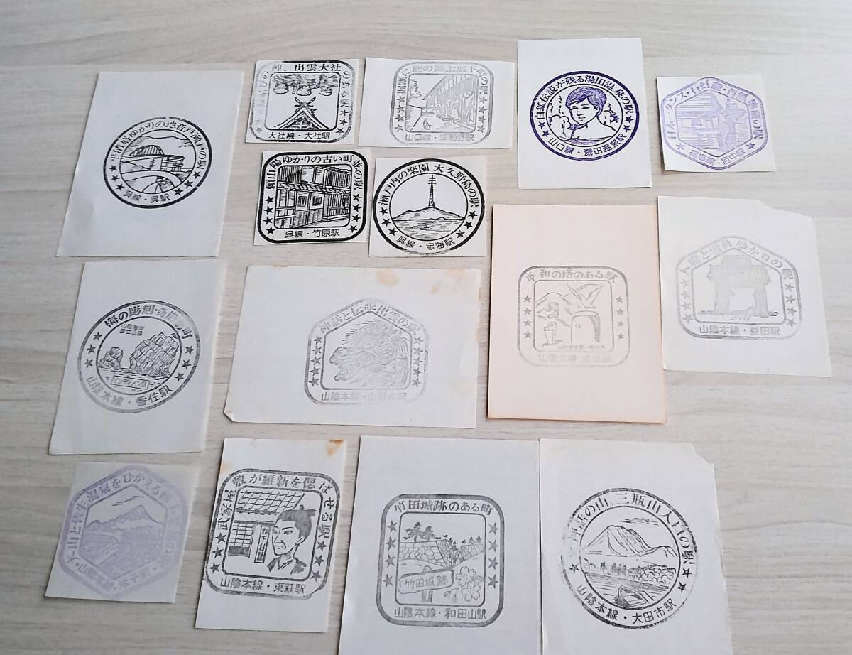 - 国鉄 駅スタンプ15枚★山陰本線/大社線/山口線/呉線/福塩線★私の旅スタンプ★1980年★