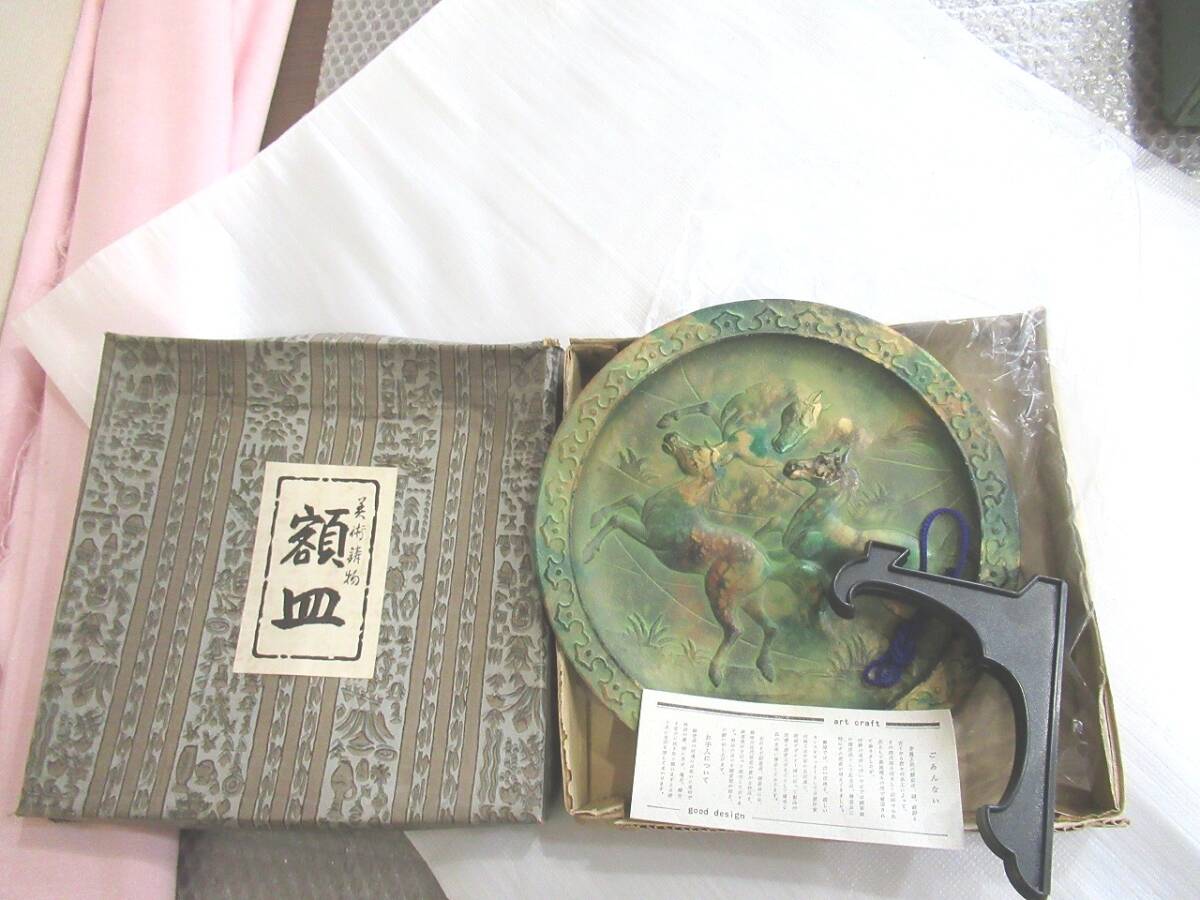 - 美術鋳物 馬 額皿 直径約26㎝ 未使用 長期保管品 昭和レトロ アンティーク ヴィンテージ