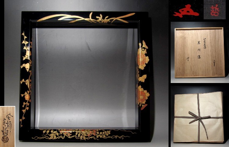 - 千家十職 中村宗哲 四季花蒔絵炉縁 裏千家鵬雲斎花押の逸品☆z768
