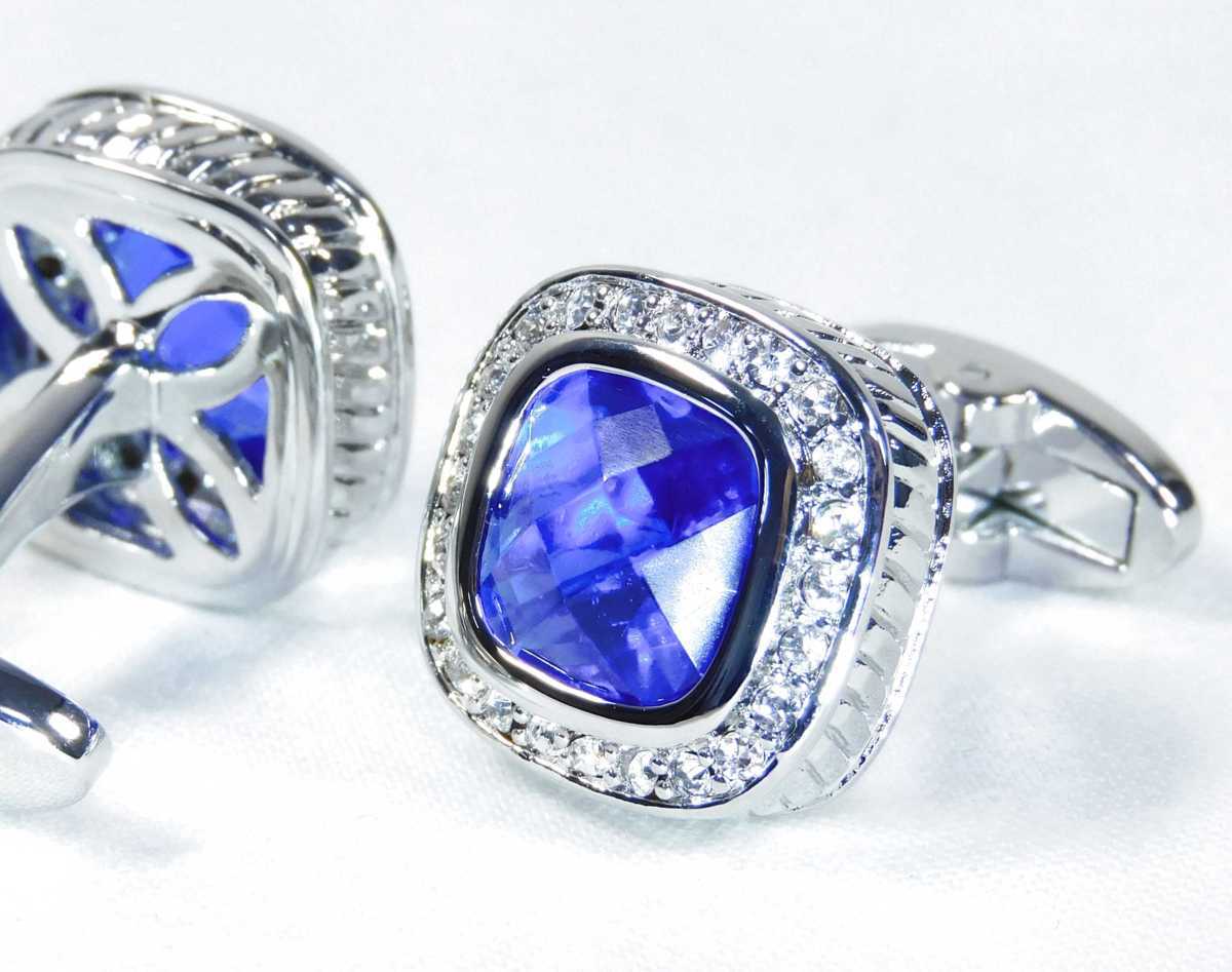 > ◆高級カフス◆スクエア サファイアジルコン◆スウィヴル式◆カフリンクス◆フォーマル◆ビジネス◆スーツ◆Yシャツ◆四角◆ブルー・青色◆