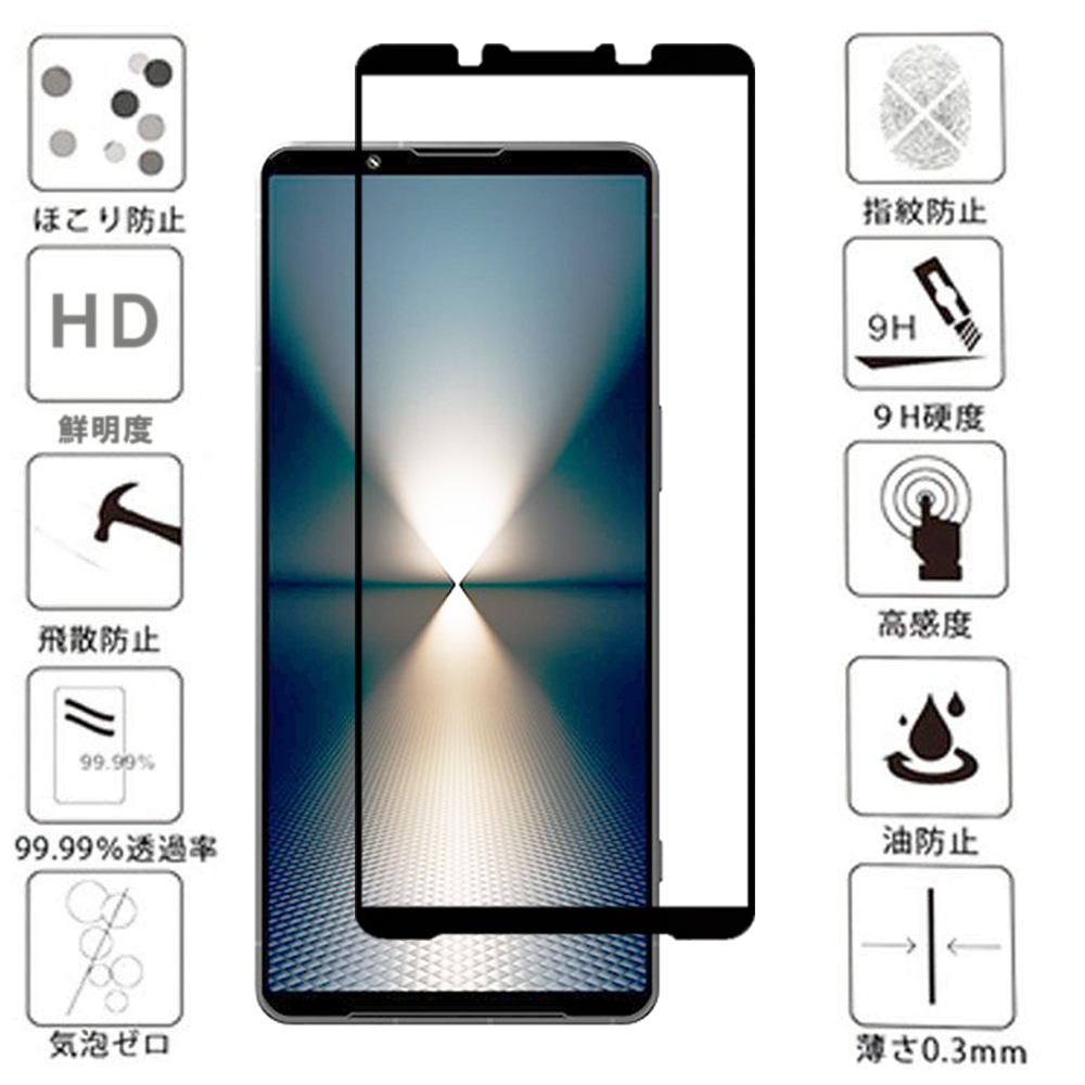 > 黒 Xperia 1 VII ガラス フィルム 画面 保護 SO-51F / SOG15 / XQ-FS44 エックスペリア カバー シール シート スクリーン Film 頑丈 9H