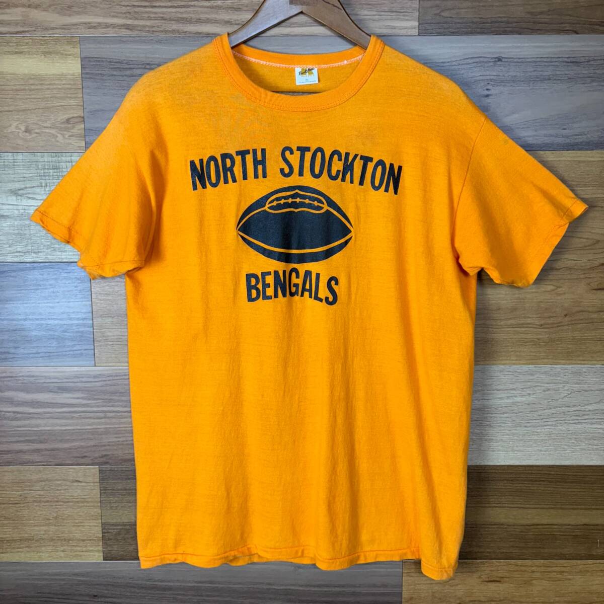 > 70s RUSSELL ラッセル 金タグ 3段プリント カレッジ T-sh Tシャツ サイズ メンズ XL シングルステッチ 70年代 アメカジ 古着 r25092411