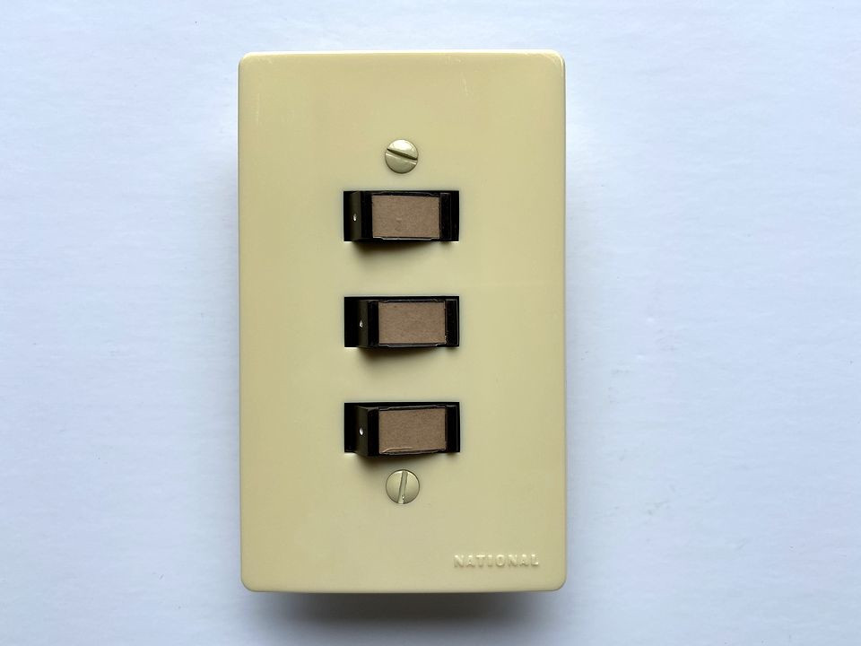 - 新品未使用! ナショナル ハイ角連用プレート3コ用 1枚+ ハイ角連用埋込スイッチB (片切) カード付3個 検 昭和レトロ 松下電工 当時物