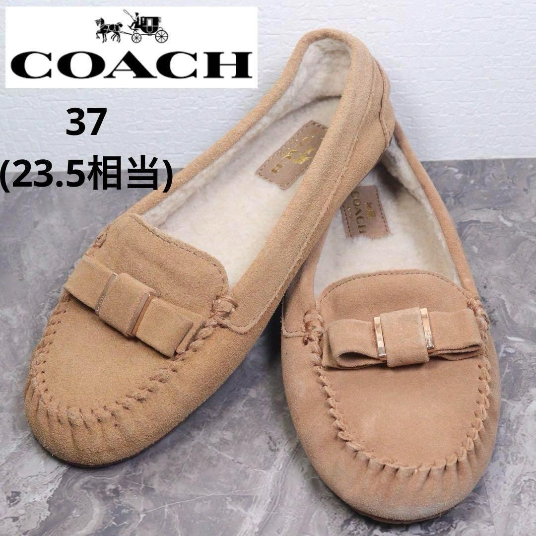 - COACH コーチ モカシン スエード リボン ロゴ 37 ボア フラット
