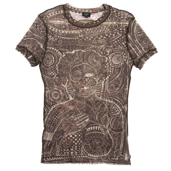 - ジャンポールゴルチエ オム グラフィックプリントインサイドアウトパワーネットTシャツ 茶48