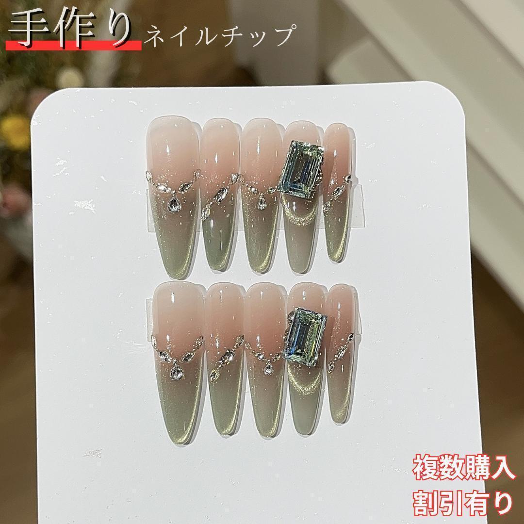 - ネイルチップ ロング 大粒ビジュー グラデ Sサイズ 量産型 地雷系 韓国 付け爪 ギャル 大人
