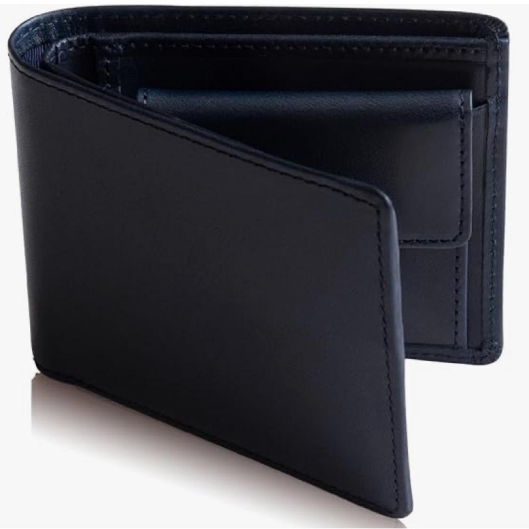 - 二つ折り財布 本革 ヌメ革 栃木レザー ネイビー 紺 メンズ シンプル お洒落