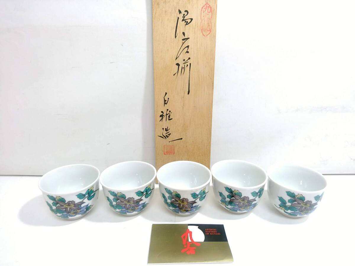 - 【うぶだし】九谷焼 九谷白雅 造 湯呑 5客揃/直径約8cm/高さ約6cm/汲出し/茶杯/在銘/湯飲み/湯のみ/茶器/茶道具/和食器/LHP16-8