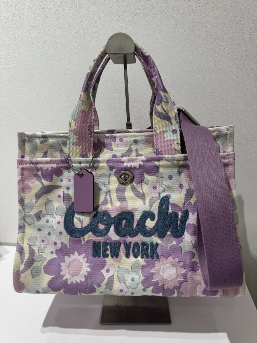 - FK2335【美品】COACH 2way カーゴ トート ハンドバッグ フローラルプリント キャンバス フラワー パープル系 2025年モデル CBG42 コーチ