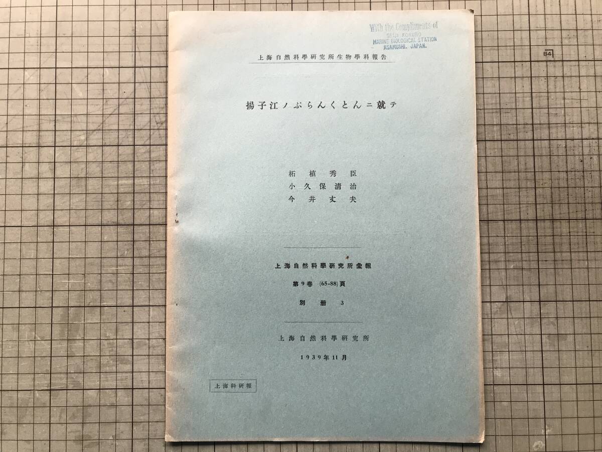 > 『揚子江ノぷらんくとんニ就テ』柘植秀臣・小久保清治・今井丈夫 上海自然科学研究所 1939年刊 ※生物学科報告 彙報第9巻別冊3 00479