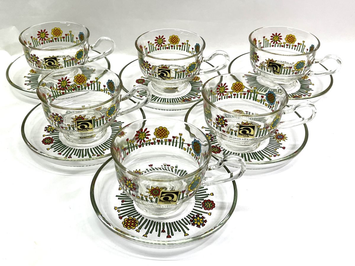> 【R401】廃盤 希少 未使用 ADERIA アデリア 石塚硝子 春うらら シェリー ティーカップ&ソーサー 6客セット 昭和レトロ 当時物 箱あり b