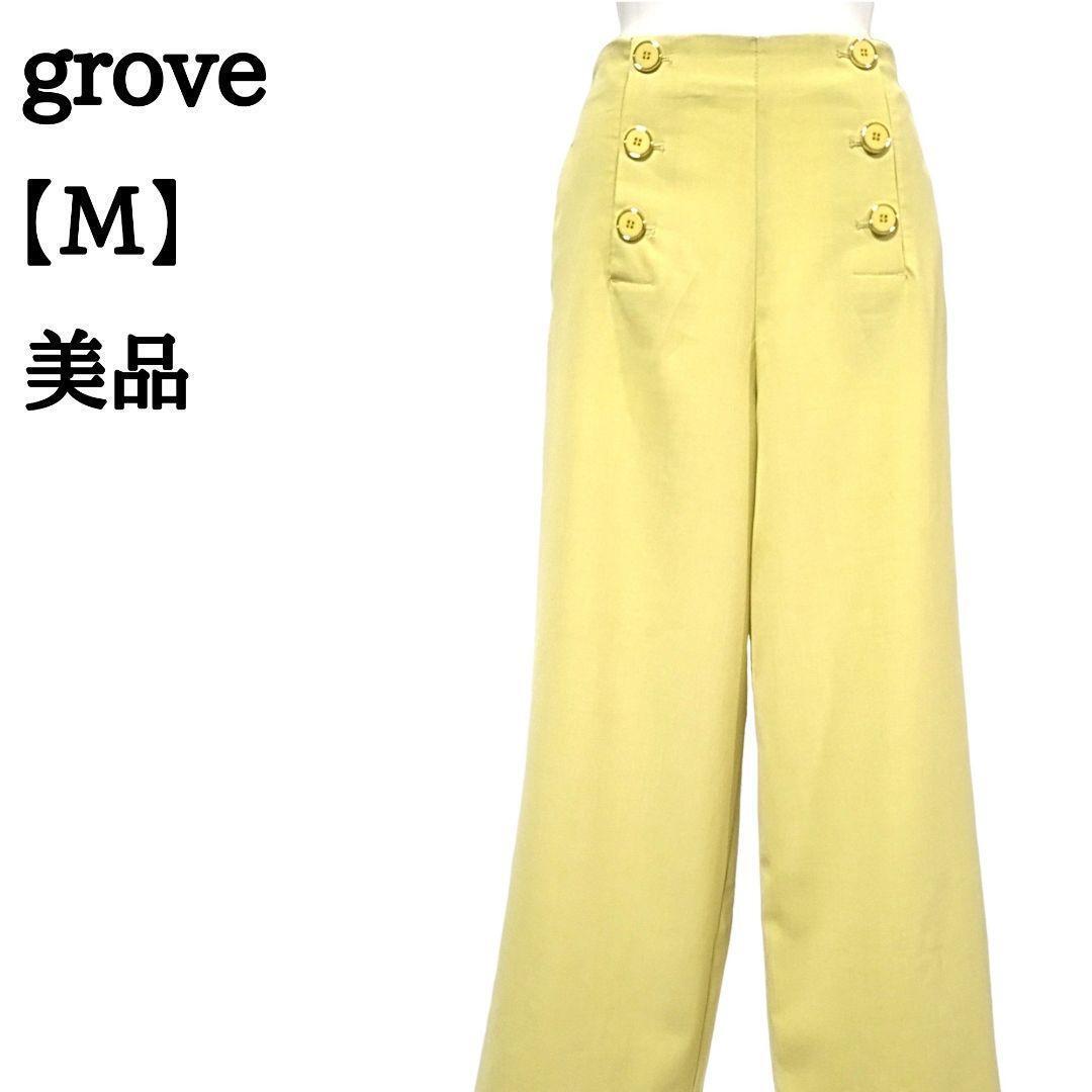 - 【美品】grove グローブ マリンボタン ワイド パンツ M ウエストゴム 夏秋 25H1y10