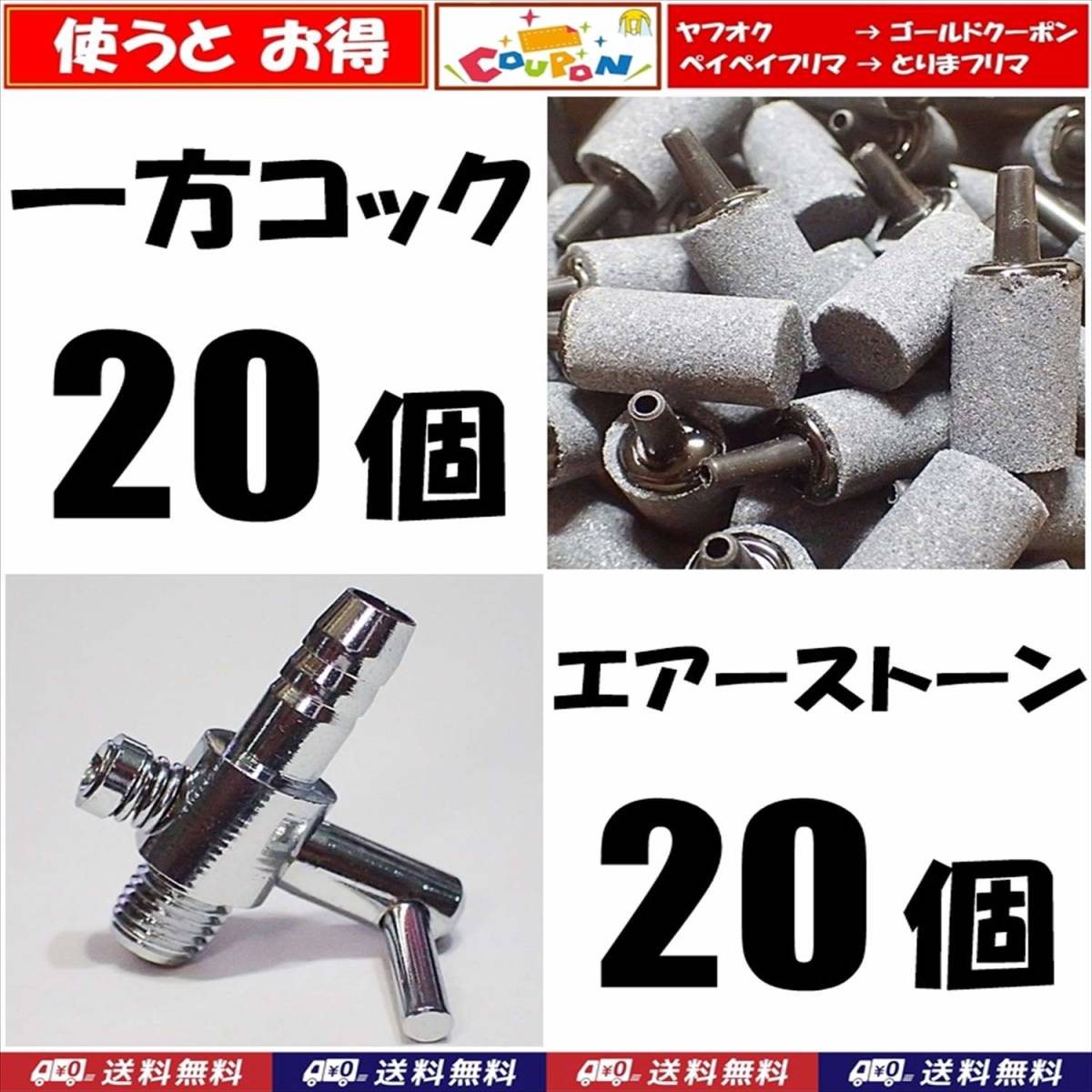 > 【送料込】 一方コック 20個+エアーストーン(円柱)20個 セット エアーコック メダカ水槽のエアー供給用に エアーポンプ圧調整用に