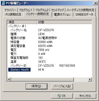 - 【実測容量 68% 積算充電指 162 】CF-NX/SX 用 純正 バッテリーCF-VZSU76JS ★送料 185円