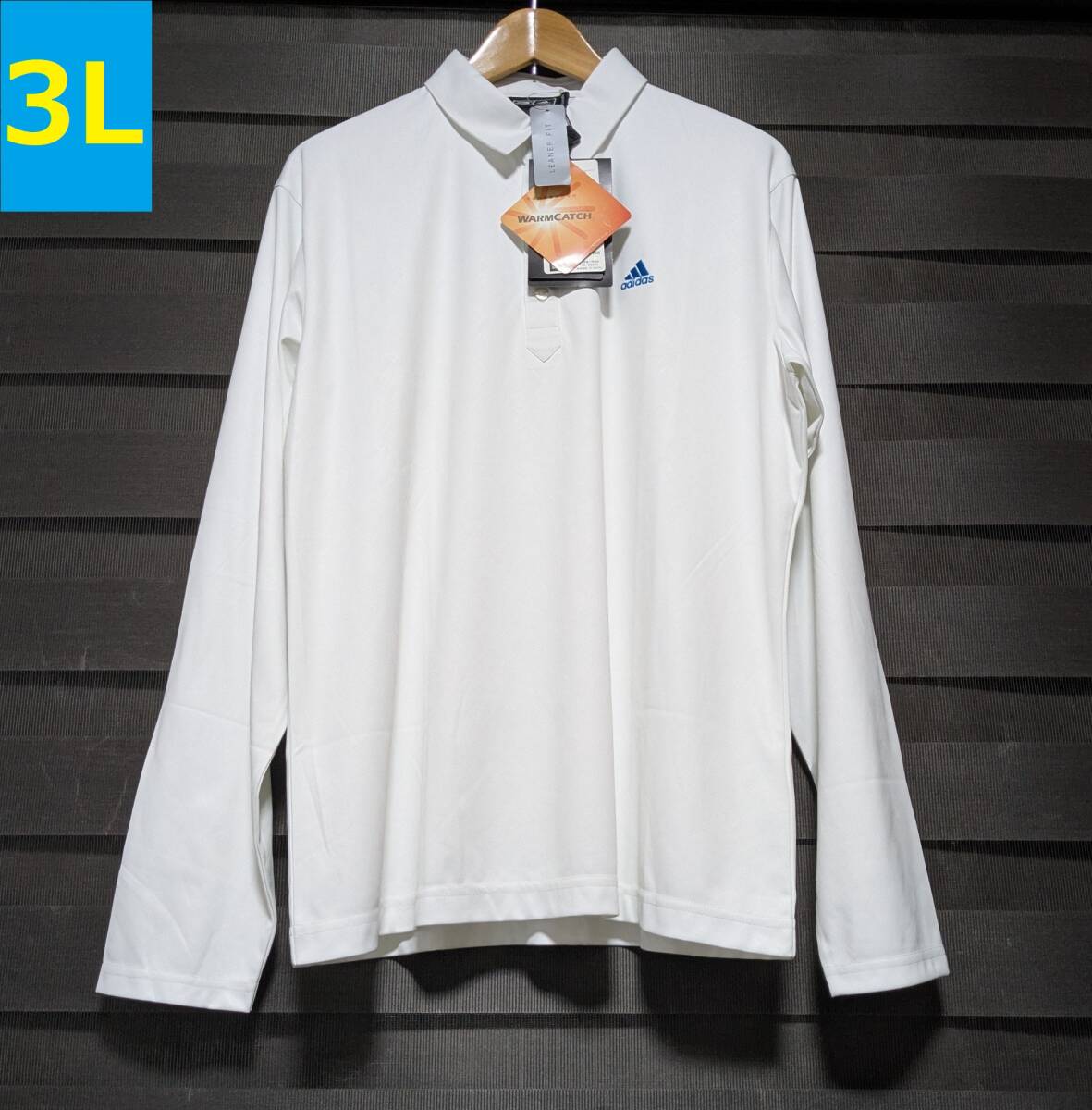 > 新品 アディダスゴルフ ★大きいサイズ/メンズXO(3L)/日本製★ 秋冬 4WAYストレッチ 長袖ポロシャツ 長袖シャツ カットソー 白