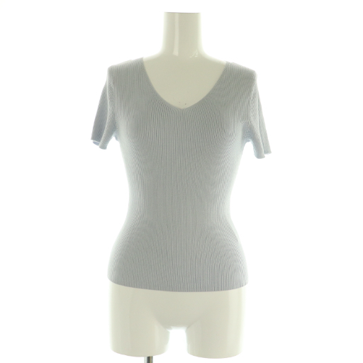 - アナイ ANAYI アセテートポリエステルVネック半袖ニット カットソー リブ 36 ライトグレー /MY ■OS レディース