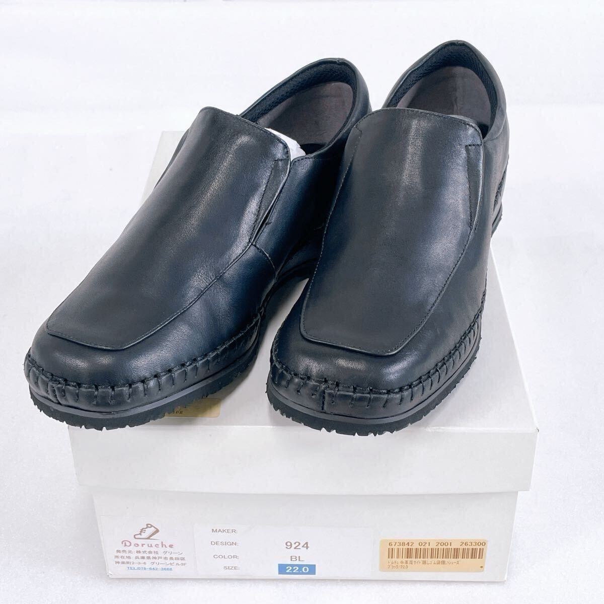 > ★未使用/保管品★ Doruche ドルチェ【22cm/ブラックレザー】日本製 レディースシューズ 牛革両サイド隠しゴム袋縫い