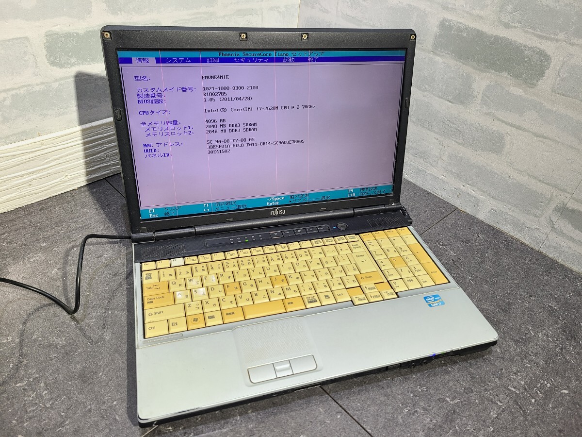 - 【ジャンク品】管2T89 FUJITSU LIFEBOOK E741/C FMVNE4M1E CPU core i7-2620M Bios起動OK HDD無し、メモリー4GB、バッテリー無し