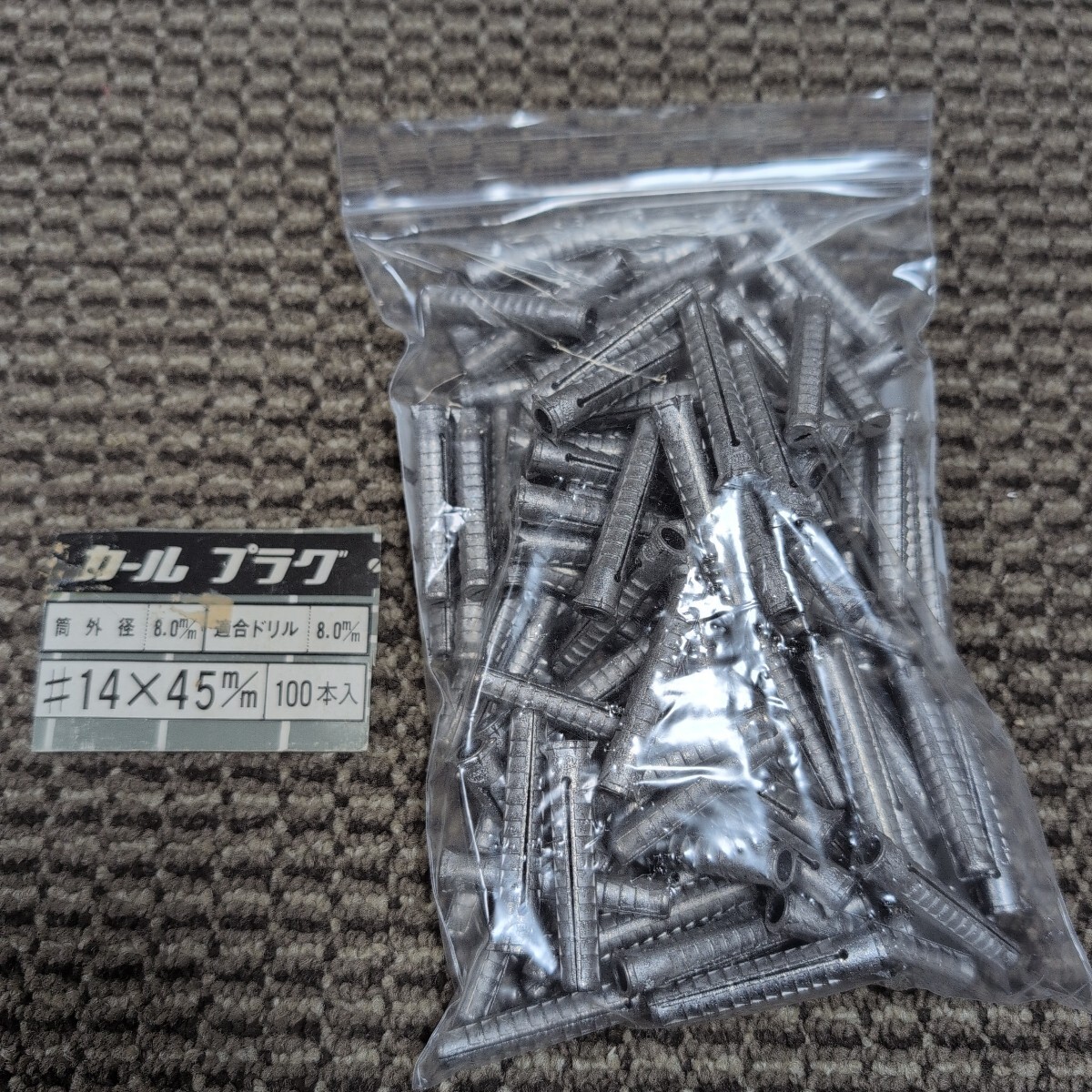 - ジャンク品/長期保管品/CARL/カールプラグ/#14×45mm/コンクリート用/ドリル径8.0mm/使用ネジ5.5~5.8mm/1P100本入り