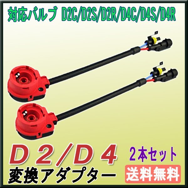 > 送料無料 D2/D4 HID変換ハーネス 変換 赤 2個セット/ アダプター ケーブル / D2C D2S D2R D4C D4S D4R / HID 35W 55W ハロゲン 純正 変換