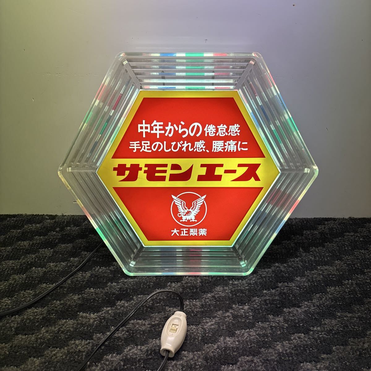 - SF136 大正製薬 電飾看板 サモンエース 当時物 プラスチック ディスプレイ インテリア オブジェ 昭和レトロ 点灯確認済 吊り下げ看板