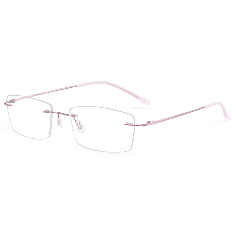 - 【ins風】メタルフレーム伊達メガネ ふち無し 金属チタン レンズ交換可能 美シルエット 小顔効果 男女兼用ピンク ydyj126