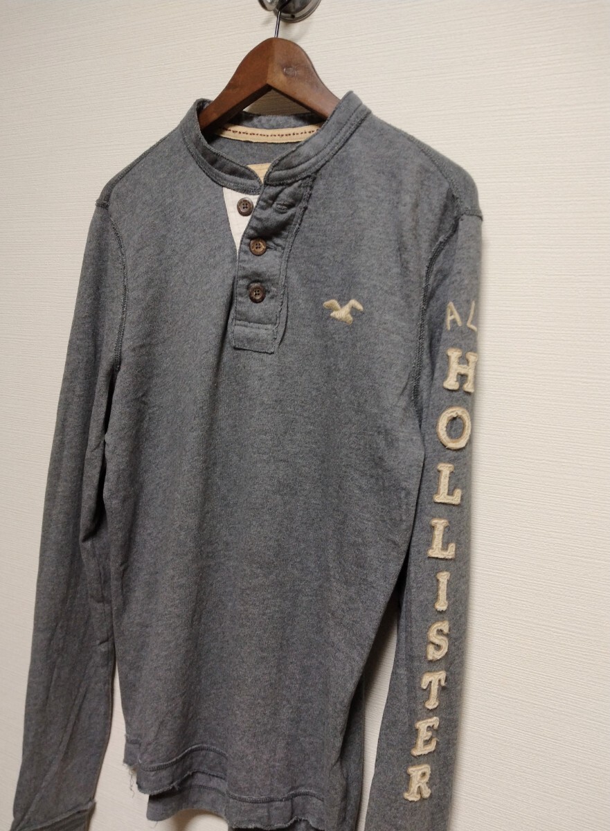 > 匿名配送込み HOLLISTER ホリスター Tシャツ ロンT トップス トレーナー サイズL 長袖 ダメージデザイン グレー