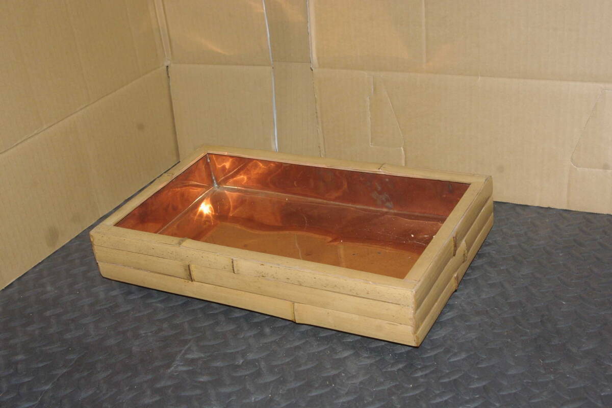 - 花台 花入れ 花器 生花 盆栽 茶道具 竹細工 銅板 サイズ 約 cm 41x25x7(8) 未使用 長期保管