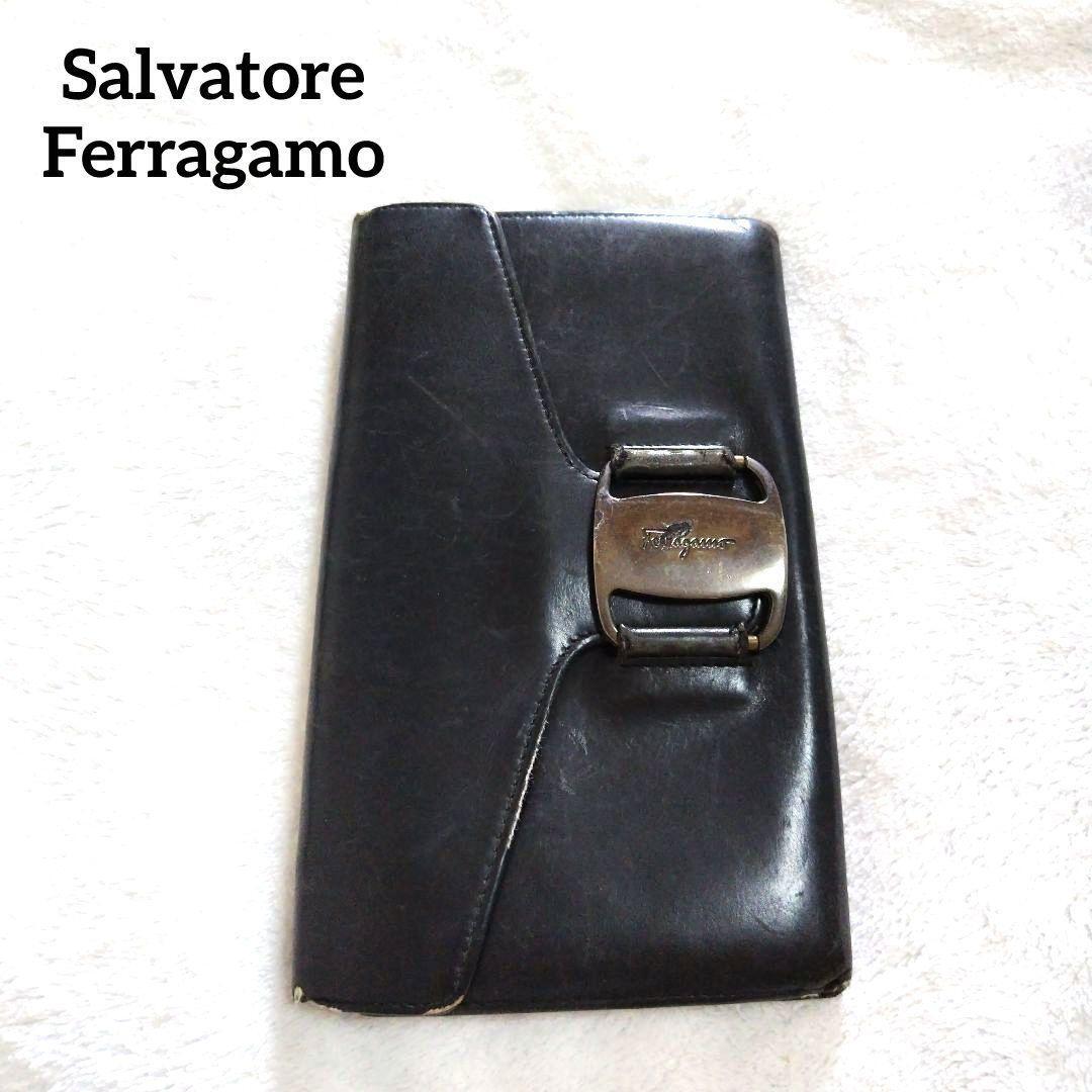 - Salvatore Ferragamo サルヴァトーレフェラガモ 長財布 スムースレザー ヴァラ 縦型 黒 札入れ ブラック メンズ レディース 男女兼用