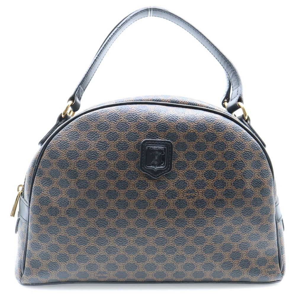 - CELINE セリーヌ マカダム ハンドバッグ ブラック×ブラウン PVCレザー ハンドバッグ ワンショルダーバッグ