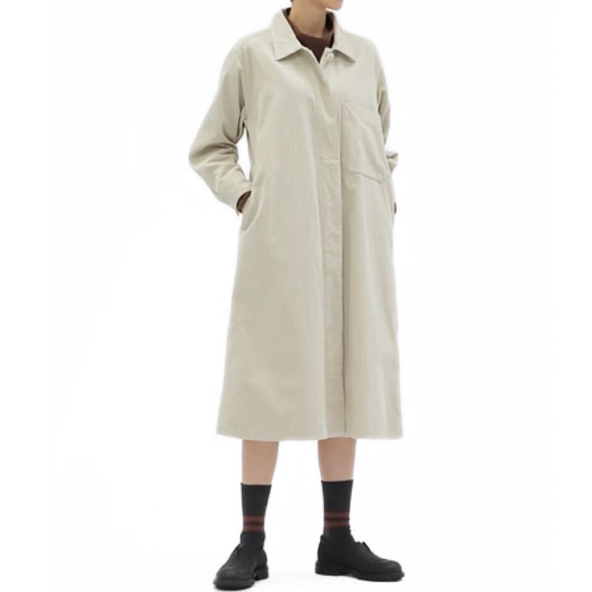 - 【24AW】MHL マーガレットハウエル DRY COTTON コーデュロイ シャツワンピース ロング 長袖 羽織り 前開き 近年 現行 チョーク