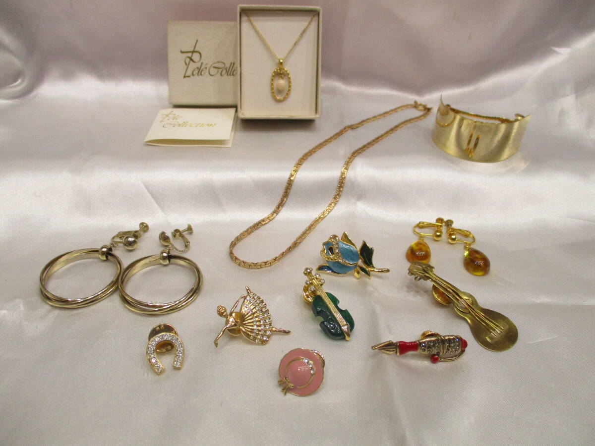 > アクセサリー12点 ピンブローチ ネックレス イヤリング バレッタ レディース ゴールド系 アンティーク 可愛い おまとめ 保管品
