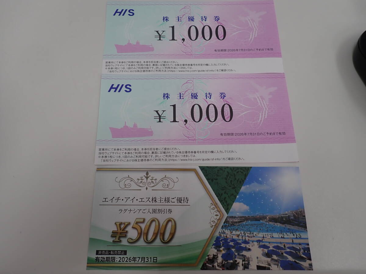 > 8086★HIS 株主優待券1,000円2枚 ラグナシアご入園割引券500円1枚 26年7月31日まで