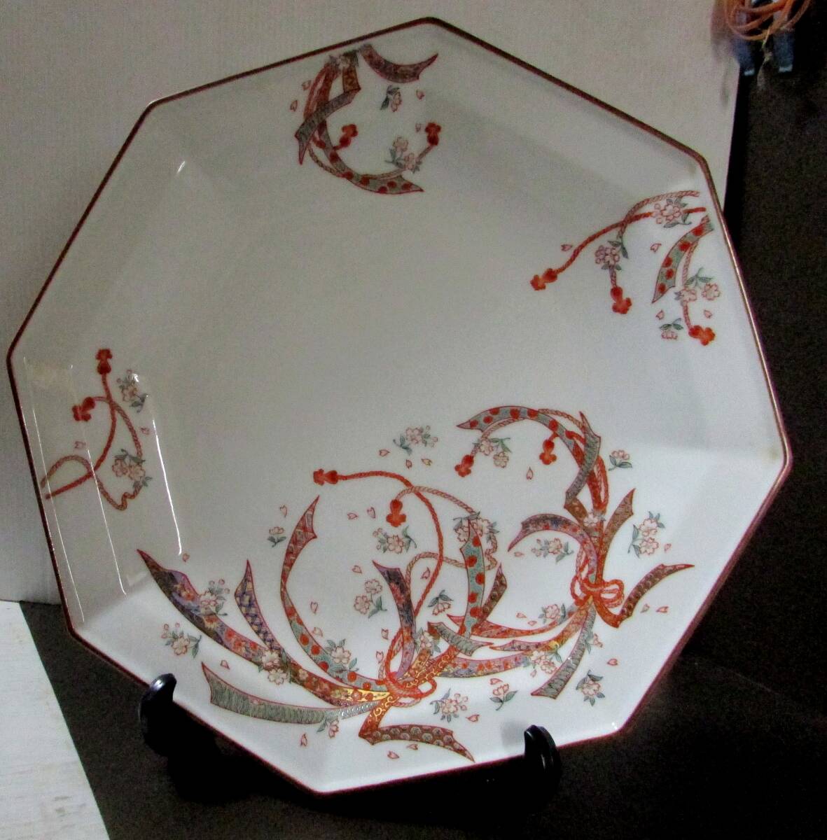> 有田焼 弥左衛門窯 八角皿鉢 色絵絵皿 オードブル皿 径:(約31cmx31㎝xH6㎝)皿立はプラ製