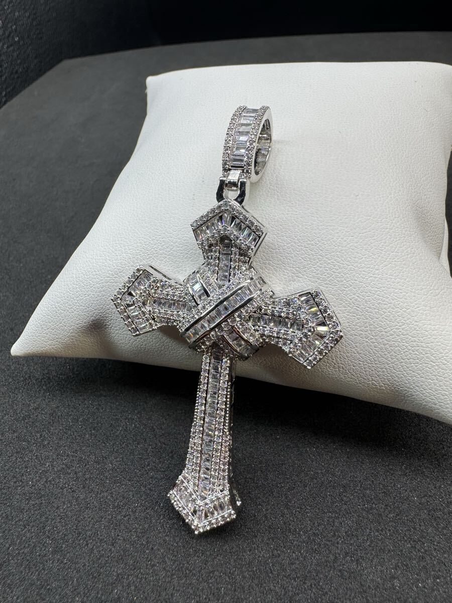 - 豪華! 十字架 ジルコニア シルバー クロス ブリンブリン ネックレス ロザリオ