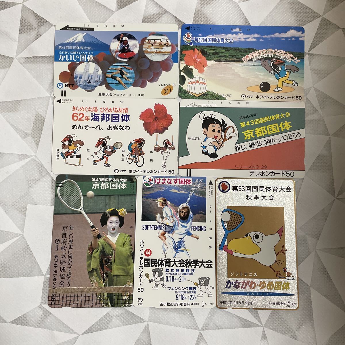 - 未使用★国民体育大会 国体 記念 テレホンカード★50度数7枚 テレカ かいじ国体 京都国体 海邦国体 はまなす国体 かながわゆめ国体