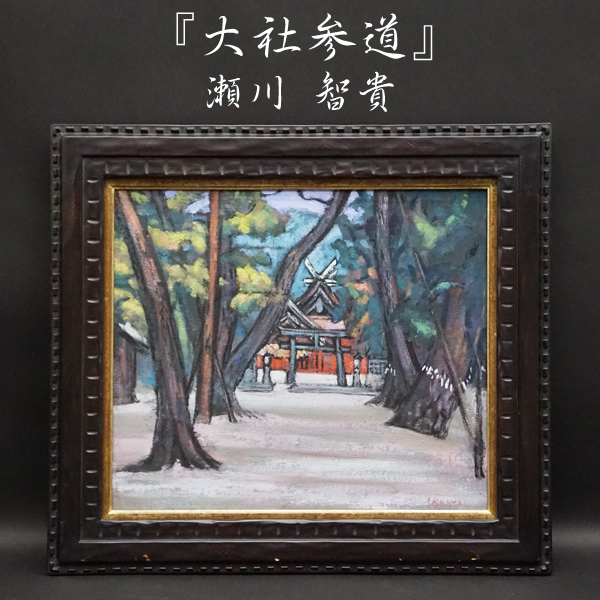 > 瀬川智貴『大社参道』10号 油彩 油絵 直筆 風景画 裏書サイン 絵画 額装 美術 アート 古美術品 真作保証品