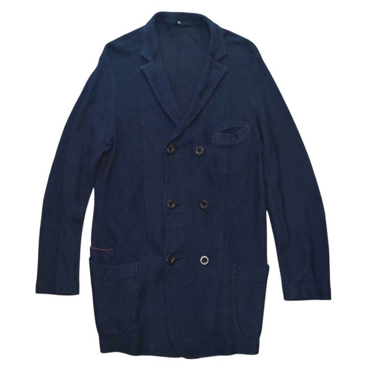 - 45R 45rpm インディゴ ドビーニット ダブルジャケット メンズL相当 日本製 コットン 藍染 天然インディゴ ニットジャケット ユニセックス