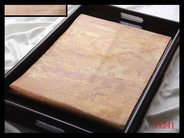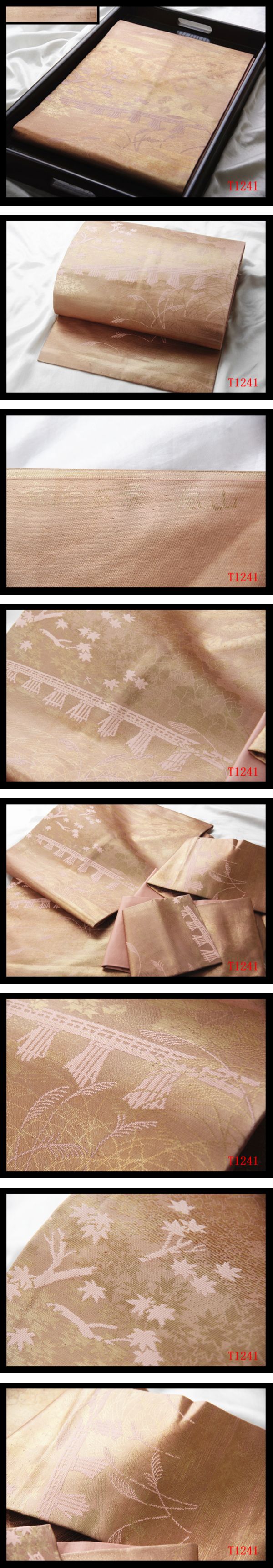 - 蔵【T1241】厳選美品 京洛百景 嵐山 退紅色地 気品豊かに 正絹純金糸高級美術名古屋帯 ◇検簪着物袋帯和装小物帯締め