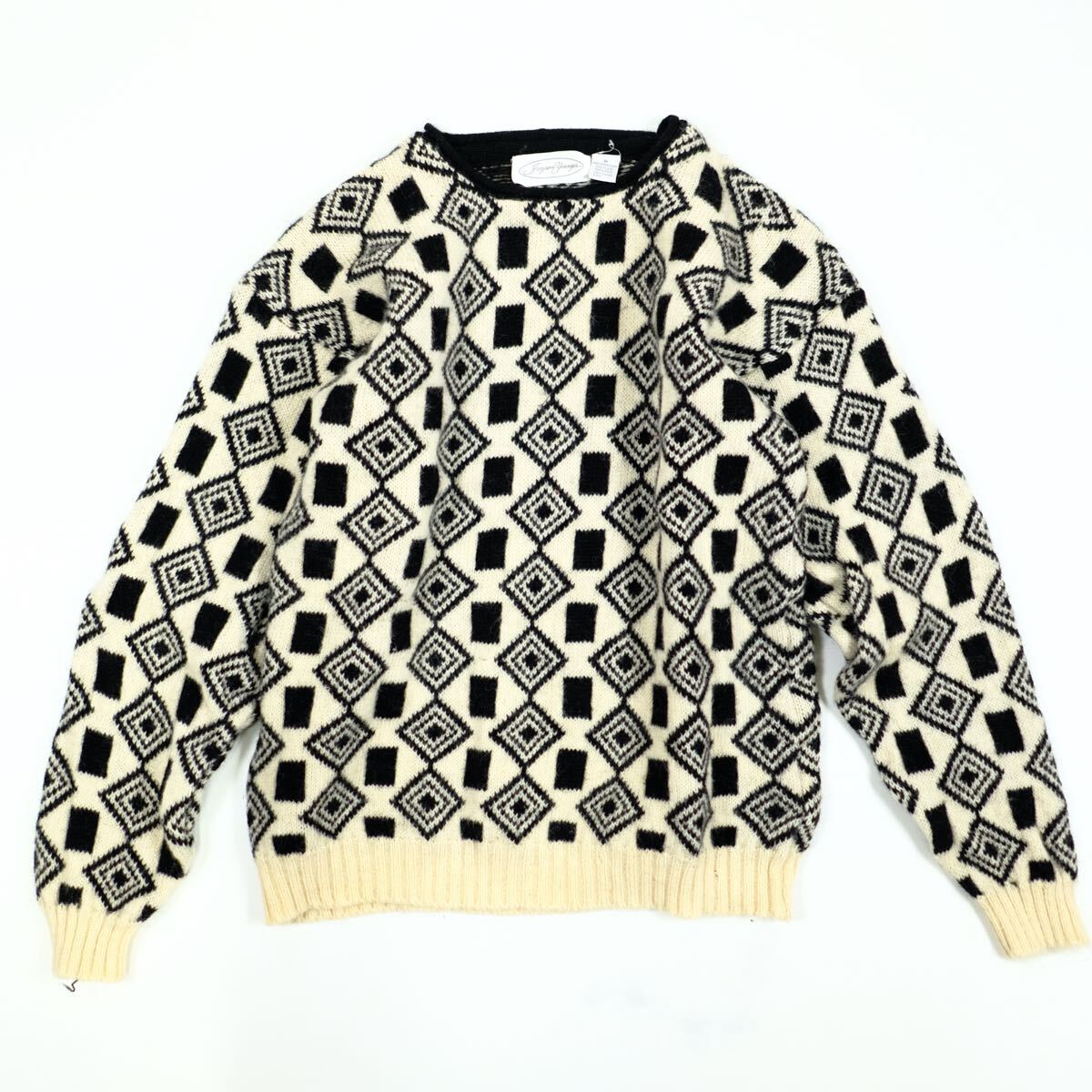 - 1980s シェットランドウール ビンテージ ニットセーター 総柄 デザイン アート 古着屋 ユーロ 幾何学模様 長袖