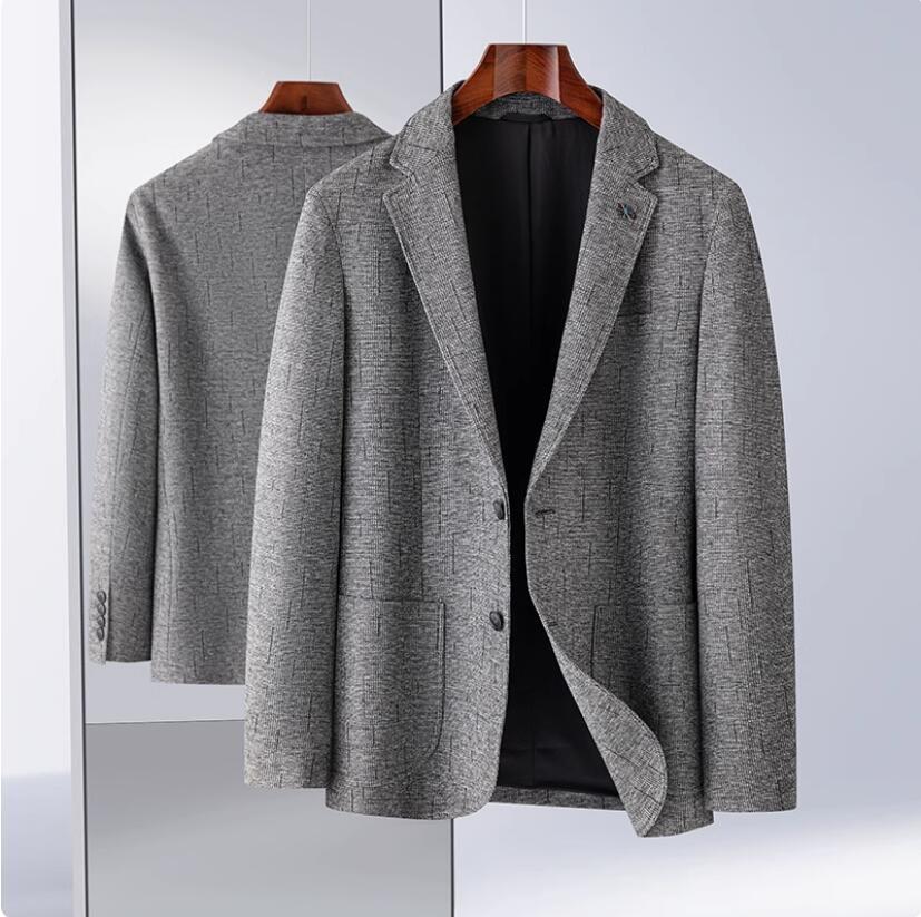 > 人気品上質ンズ ストライプ テーラードジャケット ウール混 着心地良い ノーアイロン 秋冬 通勤 細身 ビジネス ブレザー グレー